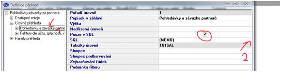 Dobrý den, tento přehled používá zdroj pouze sql. Kliknutím na řádek SQL se zobrazí sql dotaz kde můžete na konec sql dotazu dopsat ORDER BY T81SAL.NAZEVPARTNERA přehled se seřadí podle názvu partnera. Stejně tak si můžete přidat sloupec středisko (nenapsal jste jestli do horní nebo spodní úrovně).