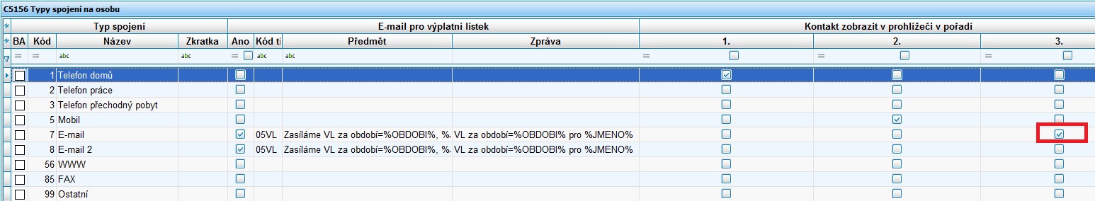 Univerzálně doporučujeme nastavení předmětu v číselníku C5156 Typy spojení na osobu pomocí níže uvedených maker. Díky nim se dosadí vždy aktuální období a jméno a příjmení dané osoby pro kterou je VL určený. Zasíláme VL za období=%OBDOBI%, %JMENO% |