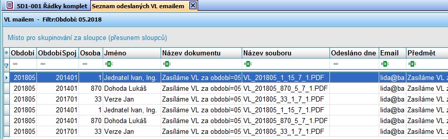 zobrazení všech VL, které již odešly e-mailem i těch, které se tisknou
